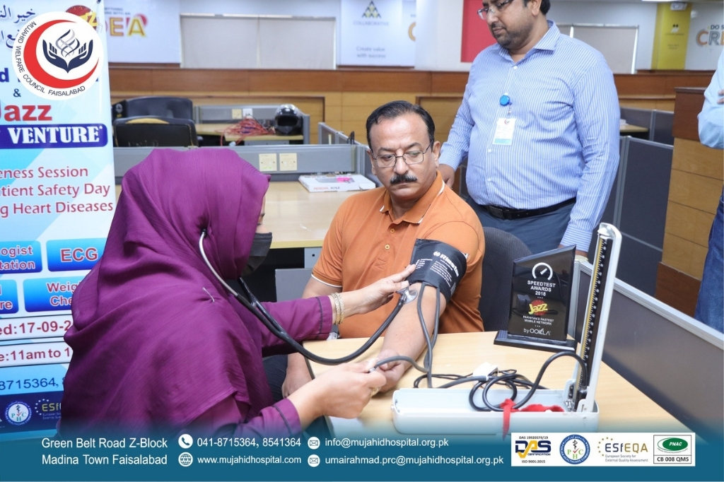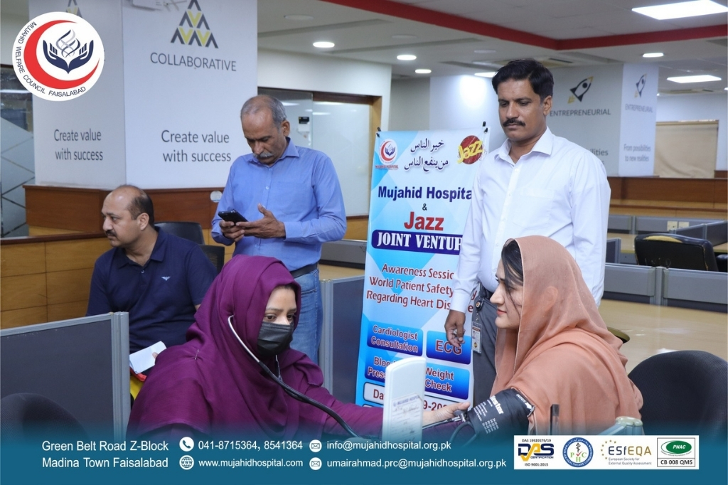 On September 17 (Patient Safety Day), Mujahid Hospital organized a special awareness session and medical camp at the Mobilink Jazz office on the topic of heart diseases.