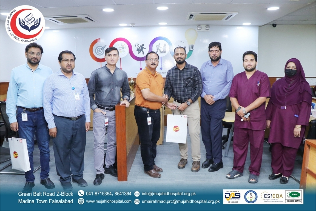 On this occasion, valuable support was extended from Mobilink Jazz by Mr. Mohsin, Regional Manager HSE, and Mr. Imran Ghias, Zonal Manager HSE. From Mujahid Hospital, Mr. Irfan Yaseen (Senior Manager Promotions & Development and HOD), Mr. Asif Raza (Corporate Officer), and Mr. Farhan Sadiq were also present.